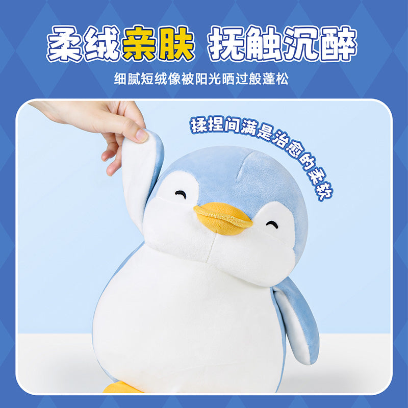 Soft blue penguin plush toy in sitting pose, 8 inches tall, perfect for kids or as a cute home decoration.