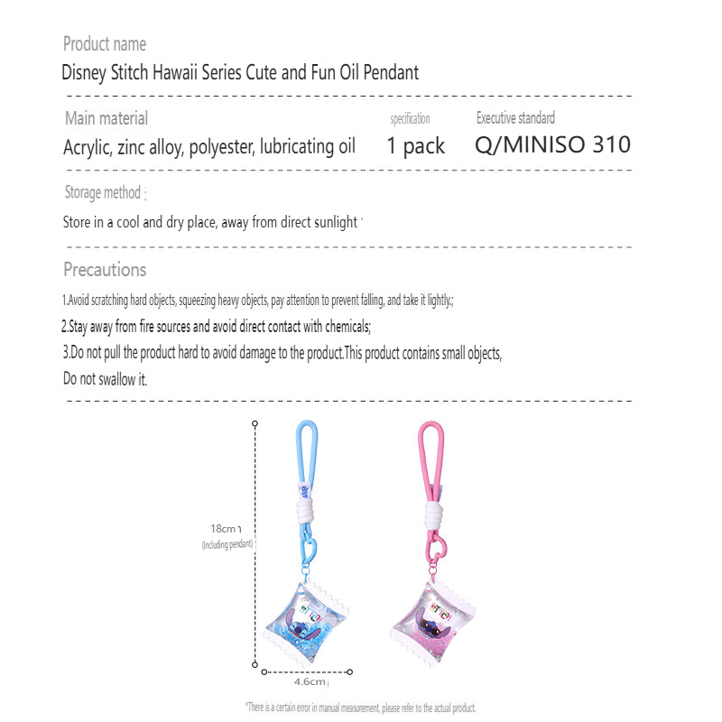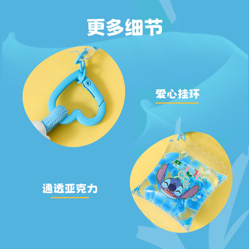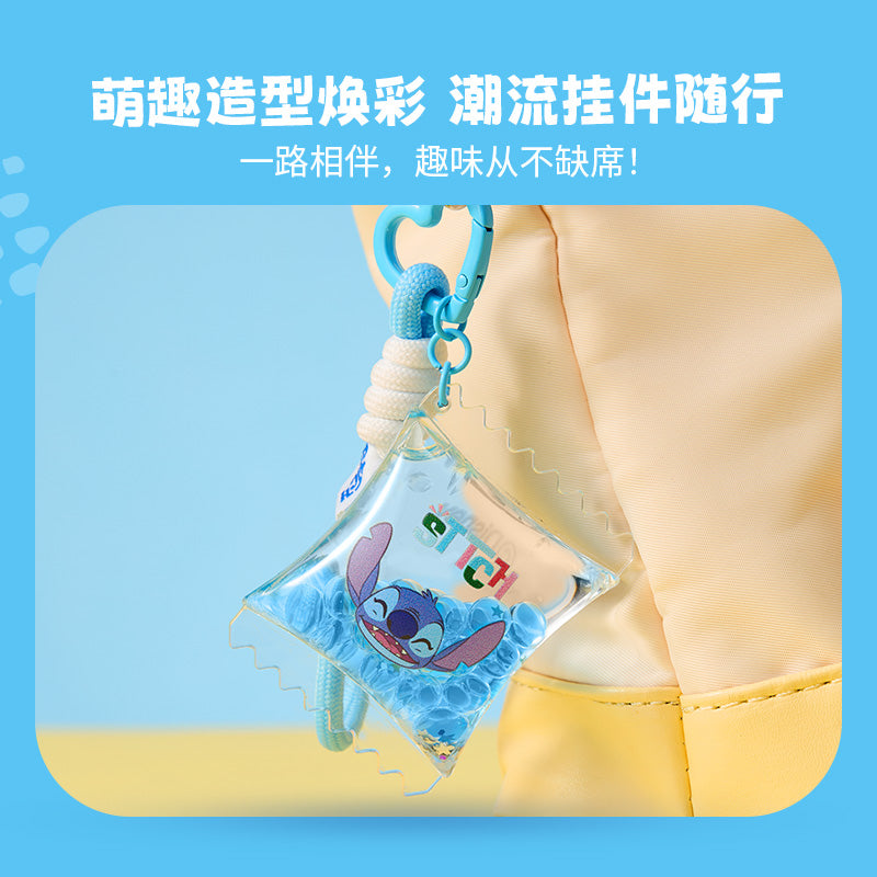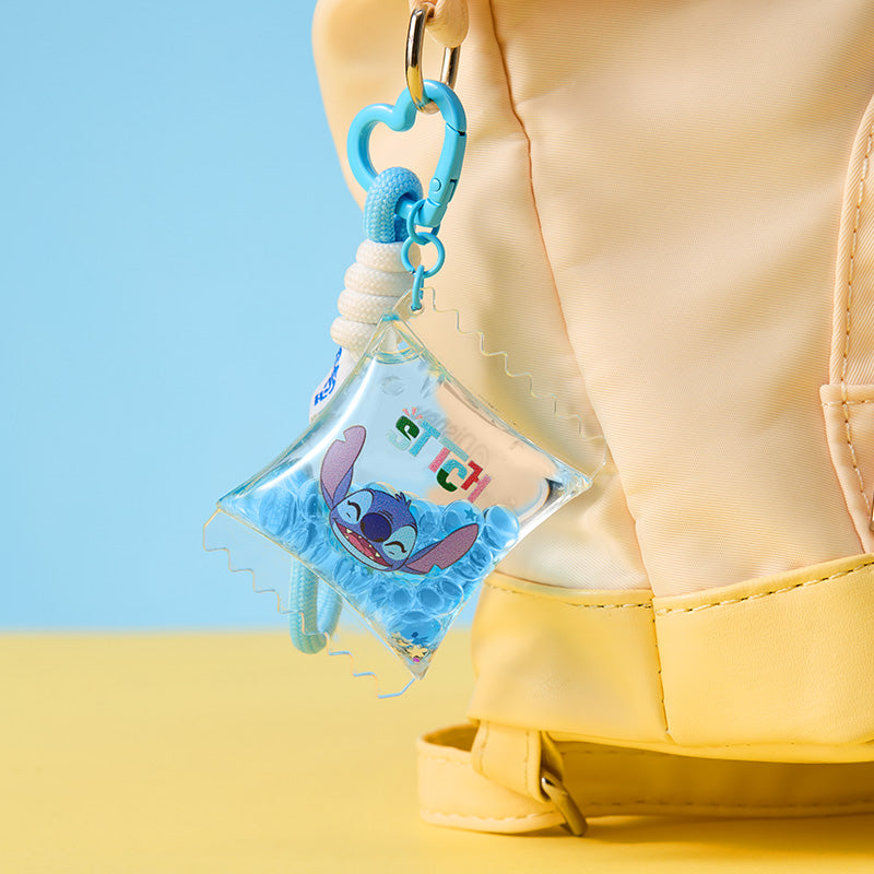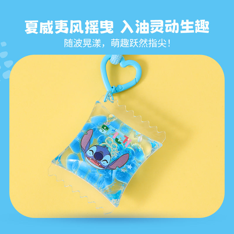 Cute Stitch keychain from the Hawaiian series, filled with fun liquid details, great for decoration or collection.