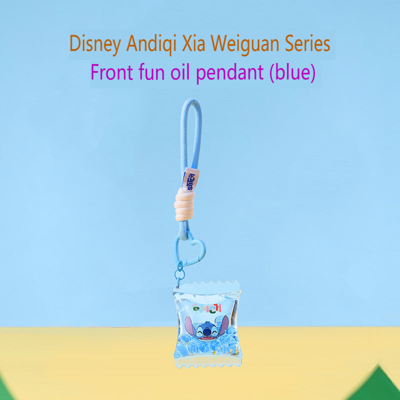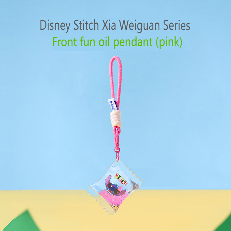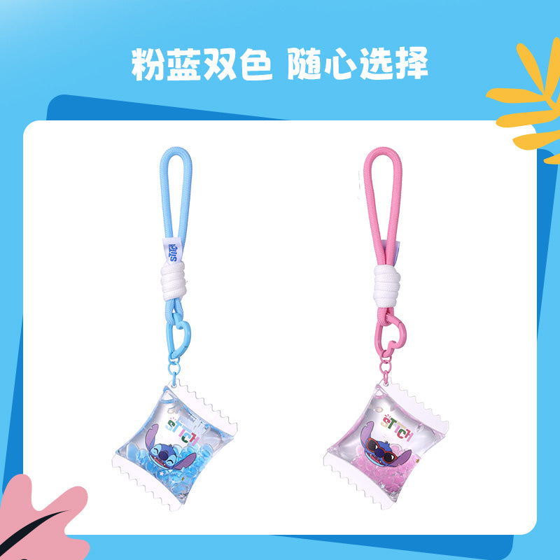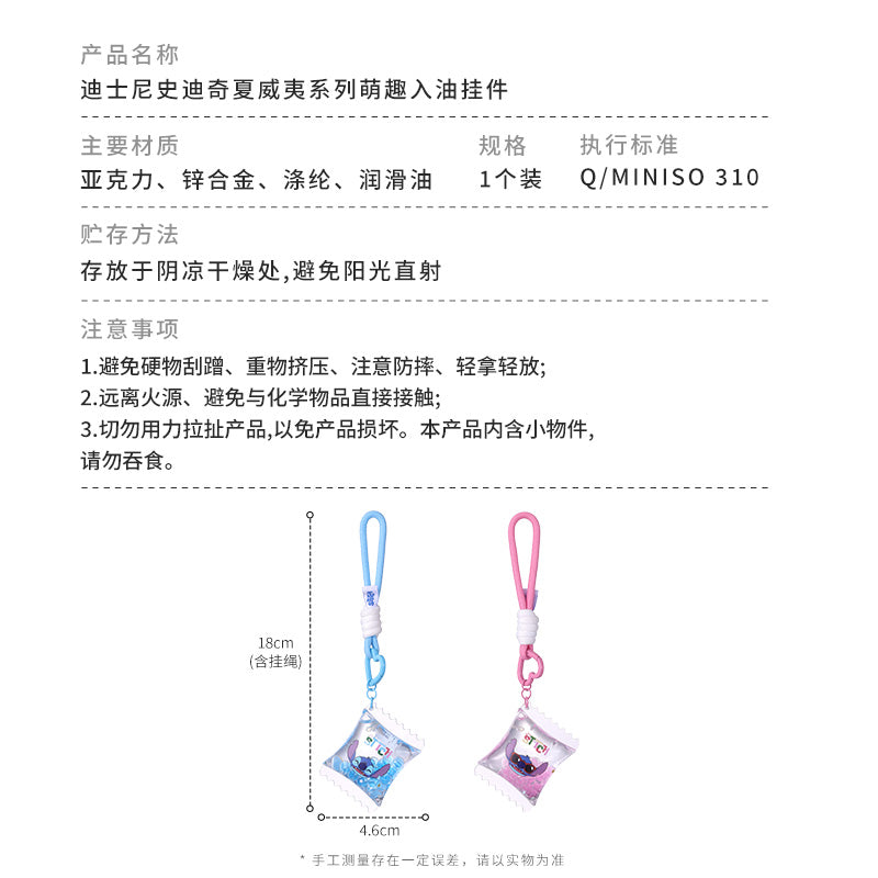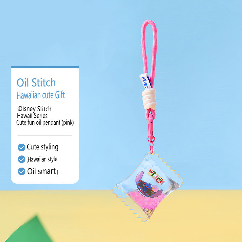 Cute Stitch keychain from the Hawaiian series, filled with fun liquid details, great for decoration or collection.