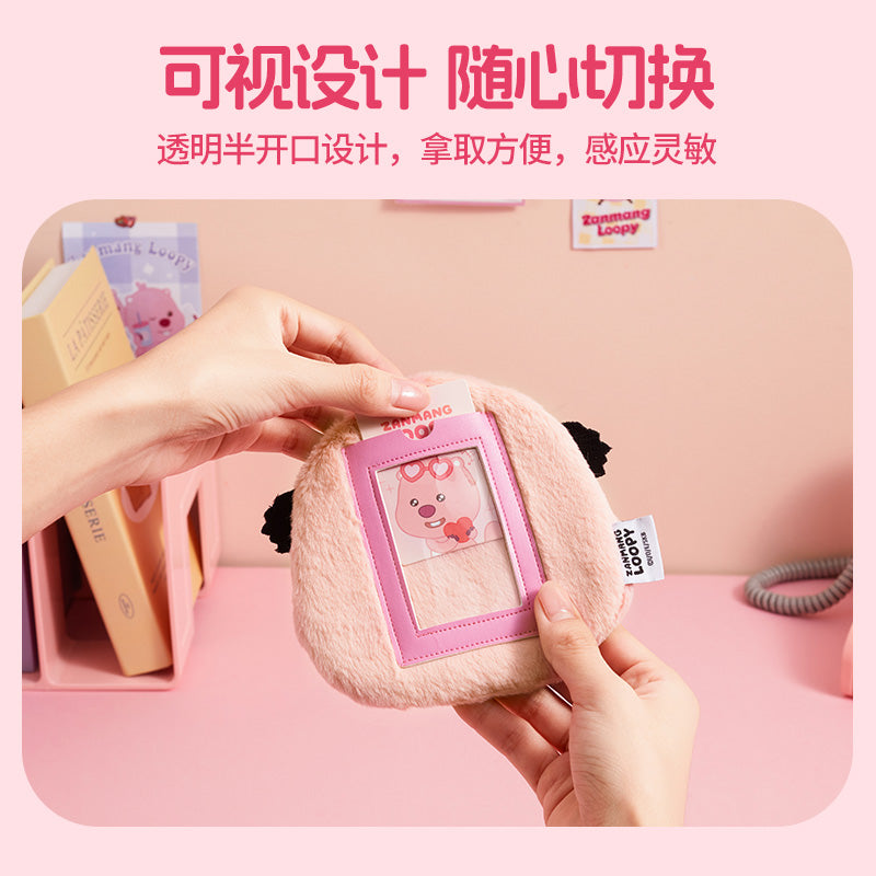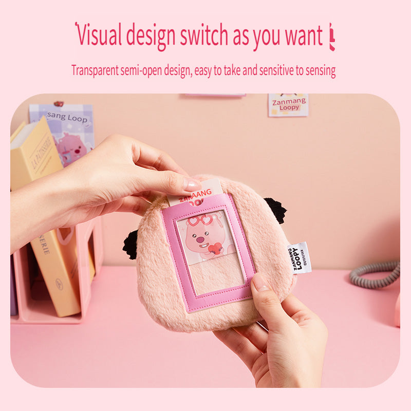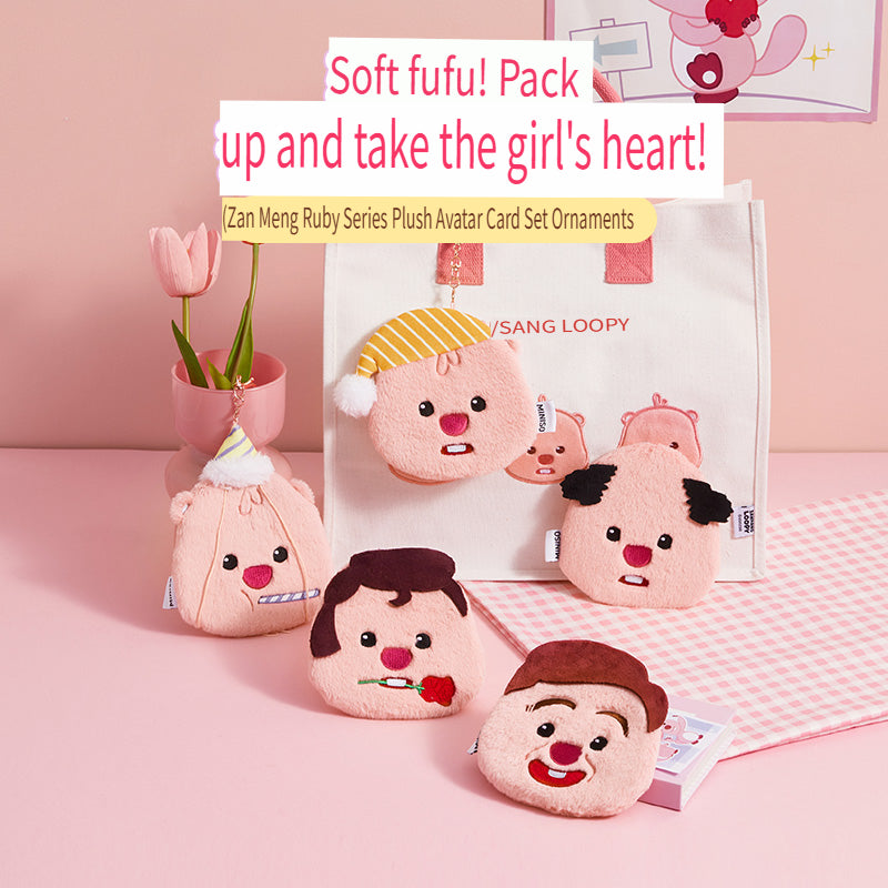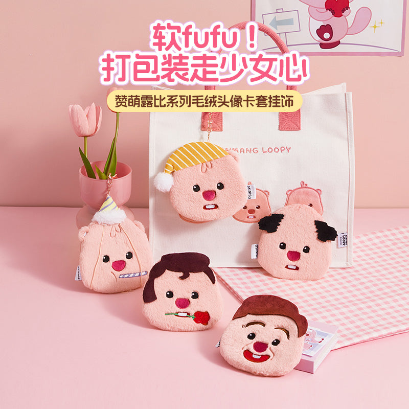 Cute Ruby series plush card holder with flower design, stylish accessory.