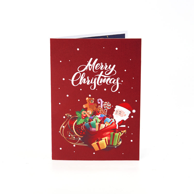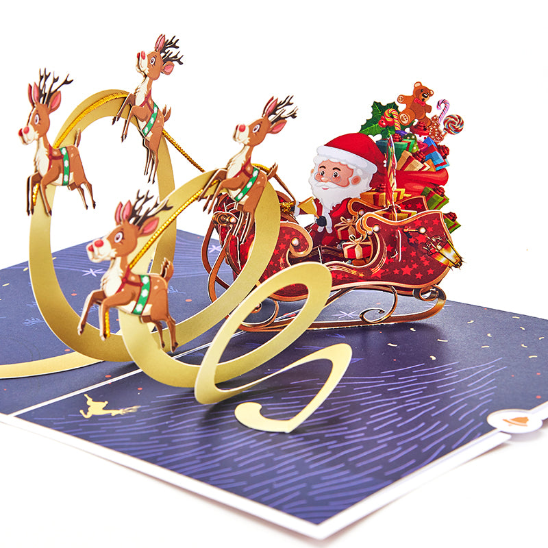 A whimsical 3D Christmas card with Santa’s sleigh in flight, bringing holiday magic to life.