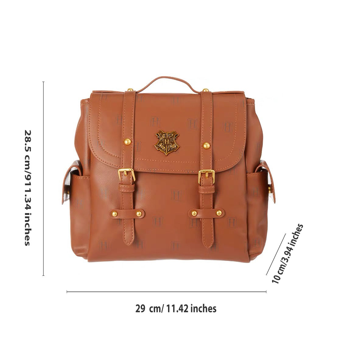 Spacious backpack with iconic Harry Potter crest patterns, ideal for school or travel.