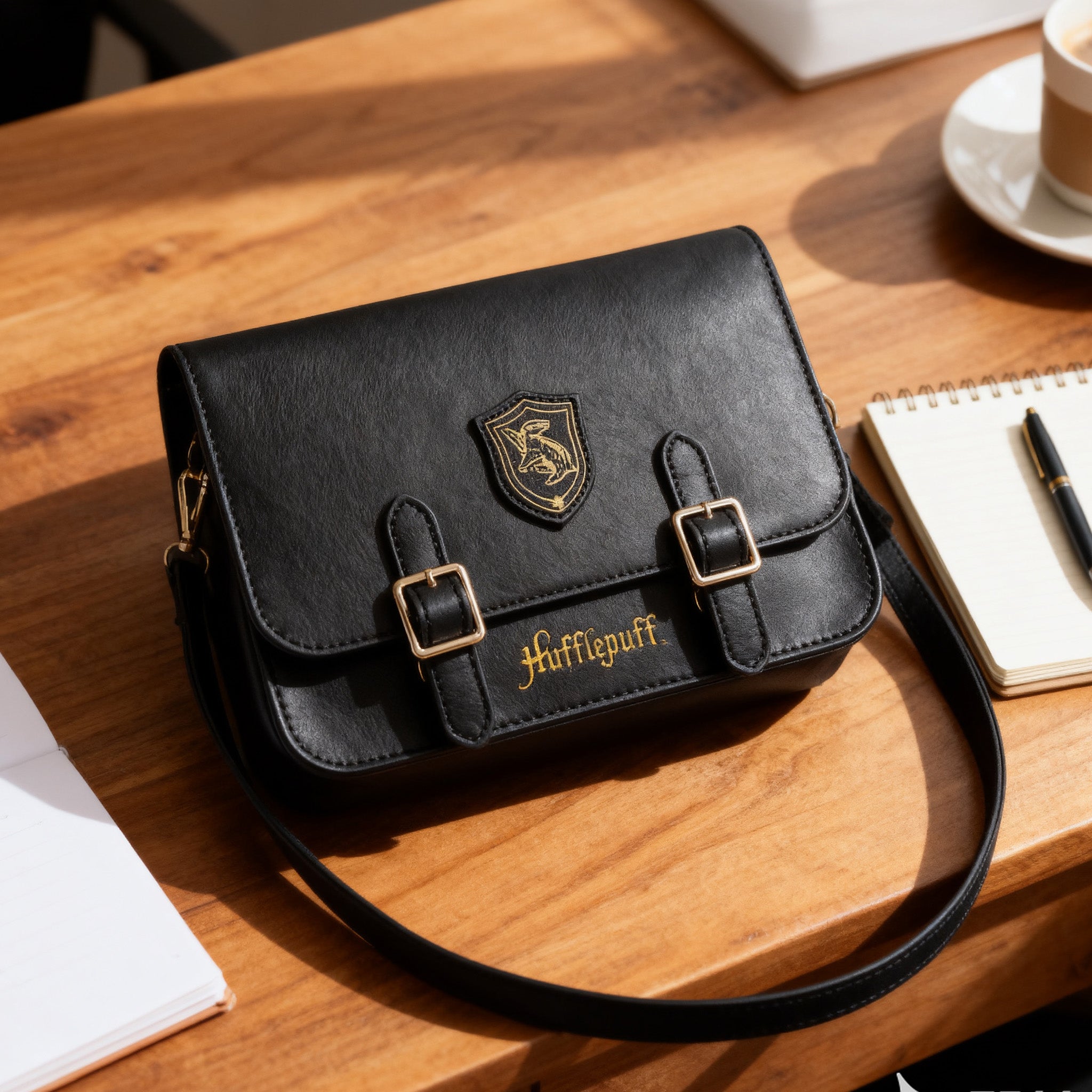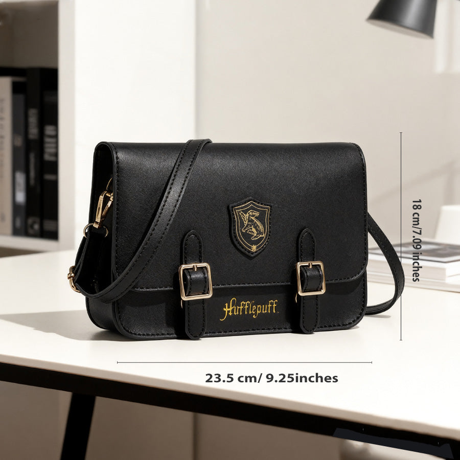 Comfortable sling bag featuring Hufflepuff colors and badger emblem, representing loyalty and hard work.