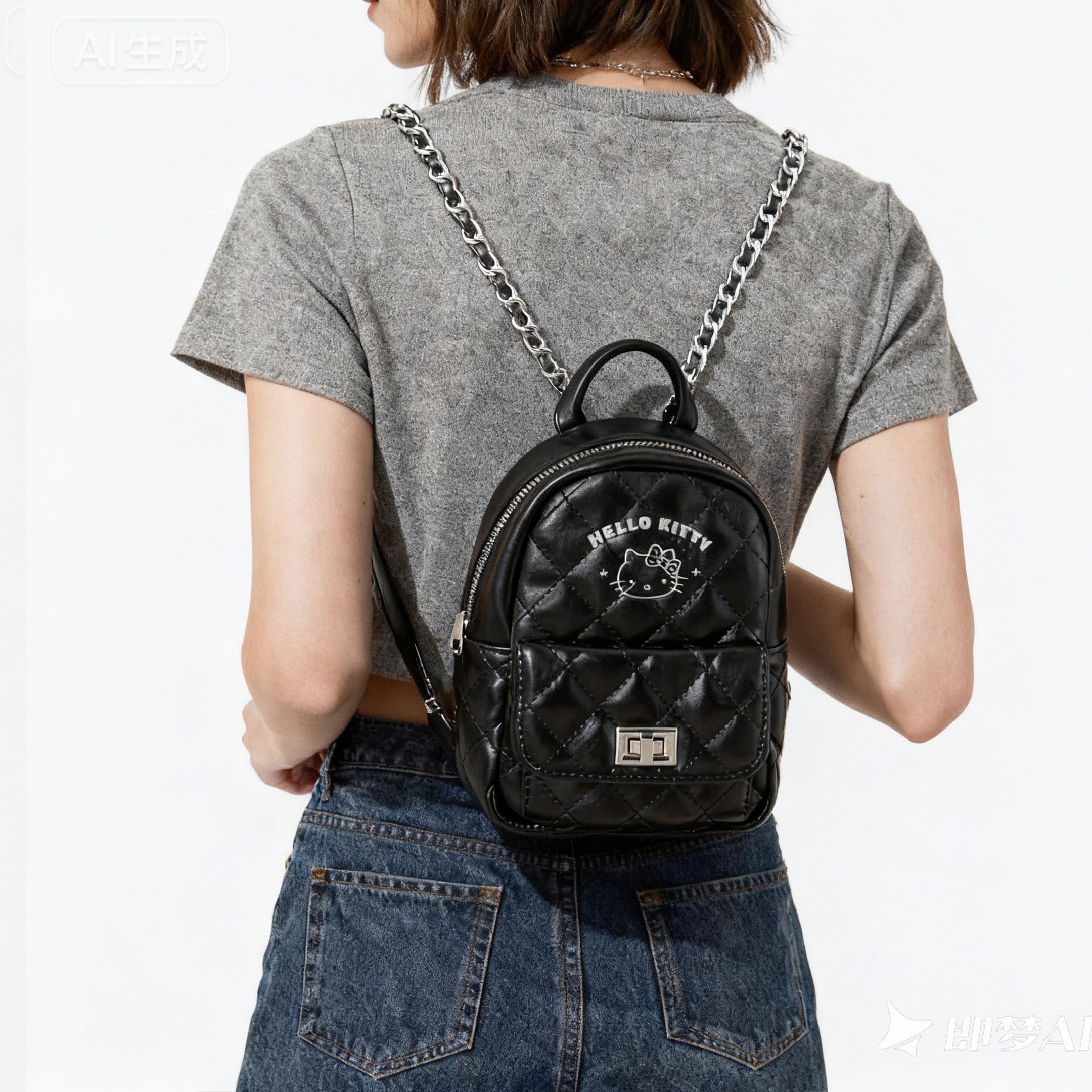 Fashionable backpack from the black and white minimalist series, featuring Hello Kitty for everyday style.