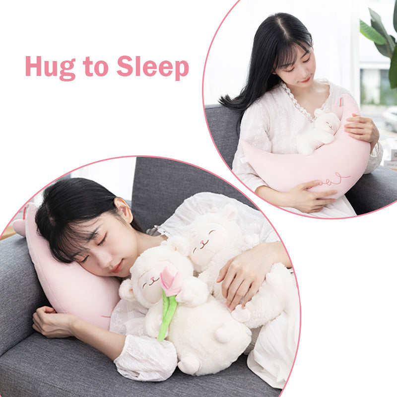 A cozy white sheep plush with a moon design, perfect for cozy nights.