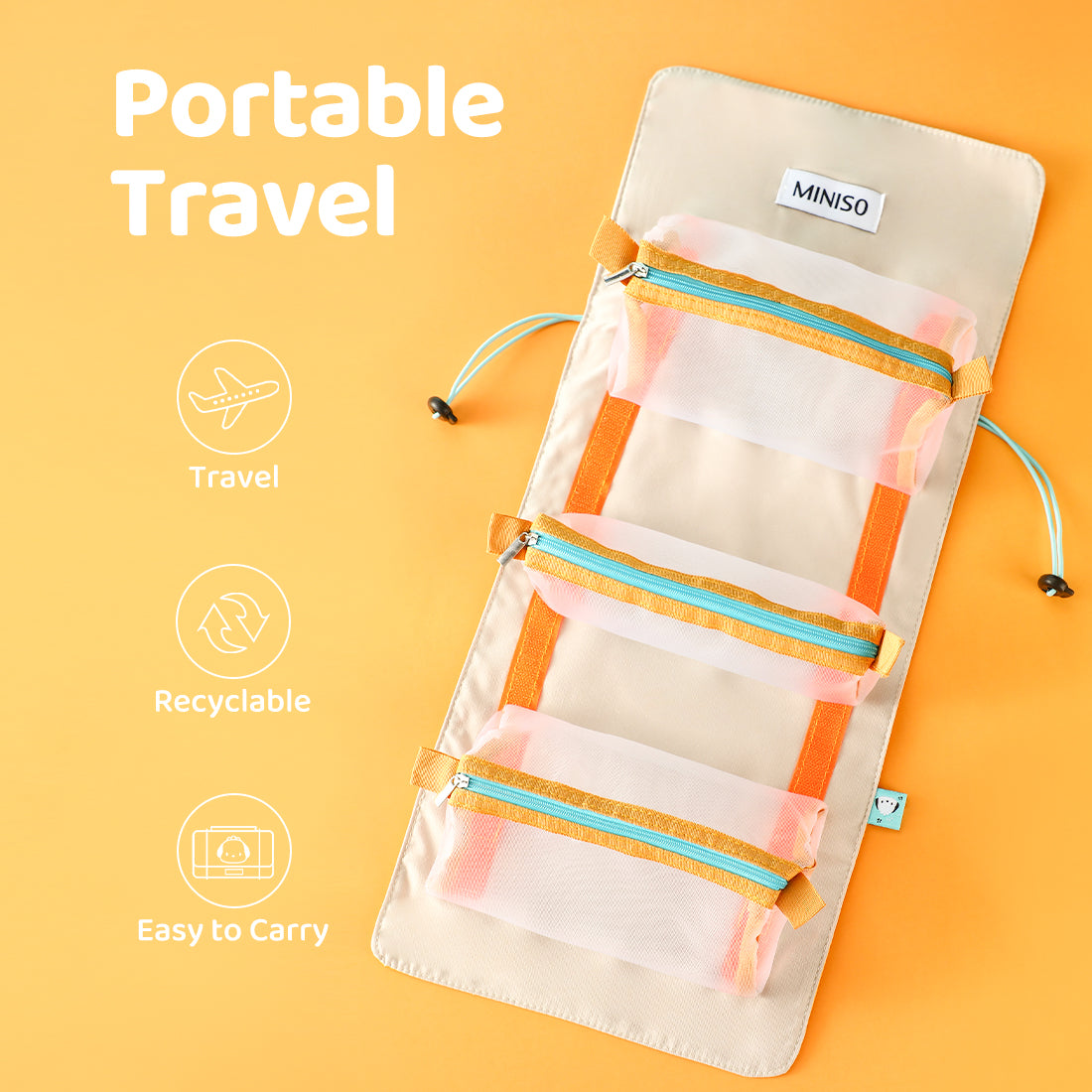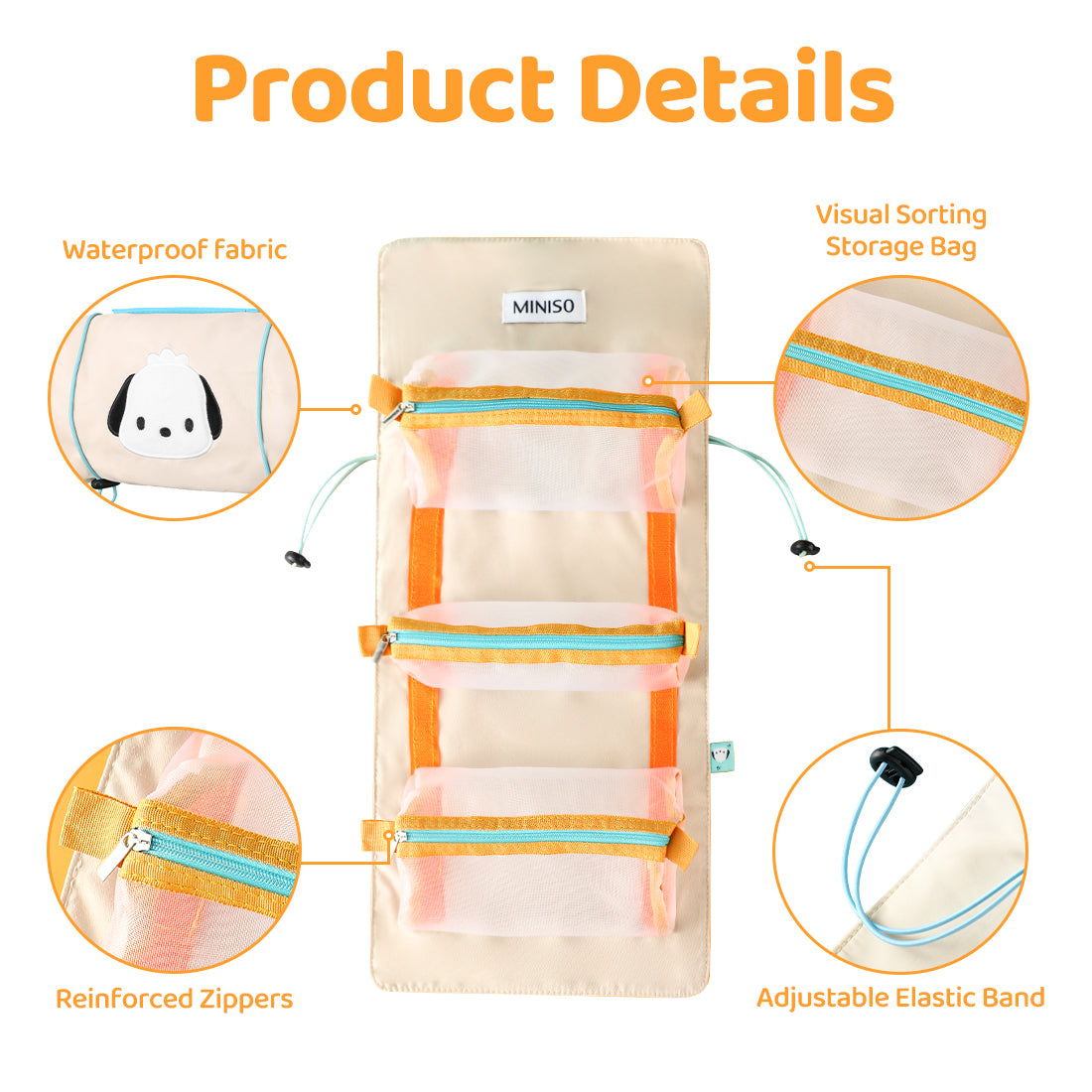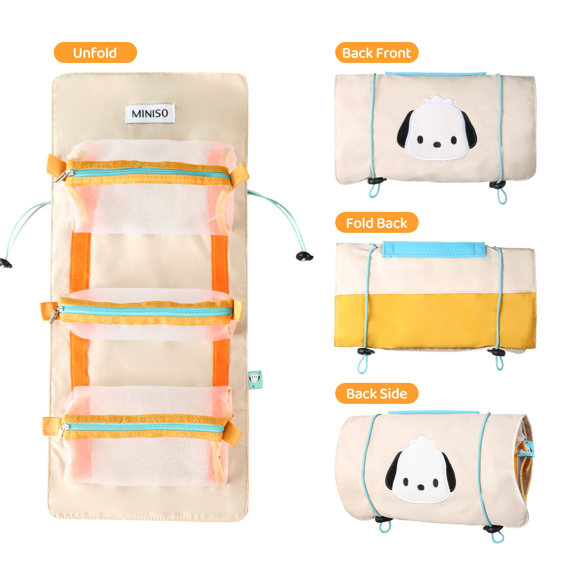 A versatile foldable cosmetic bag for storage and washing, featuring Pochacco design.