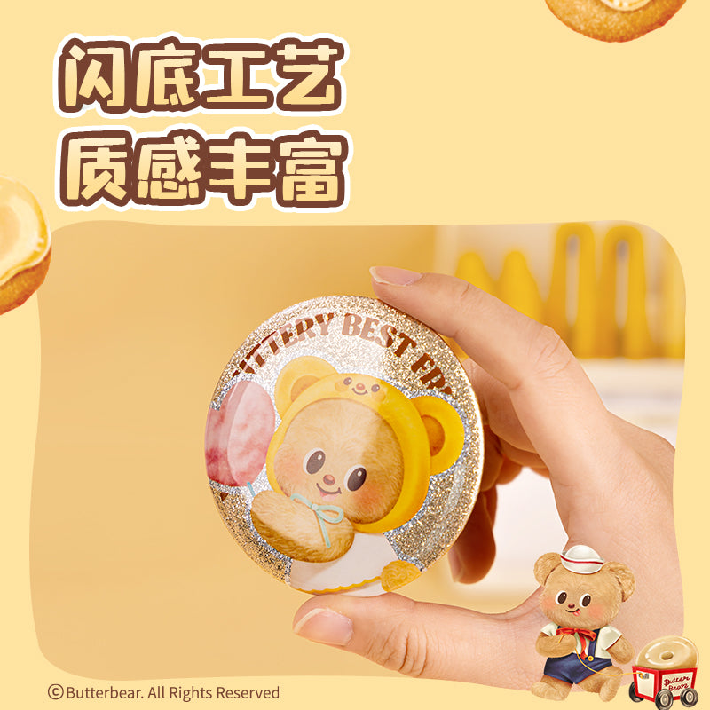 A cute large badge featuring Butter Bear from Deli, perfect for accessories.