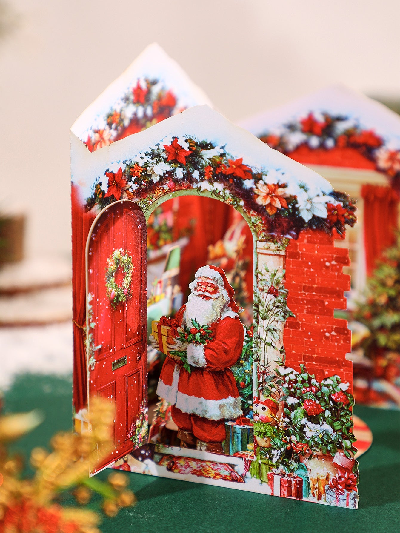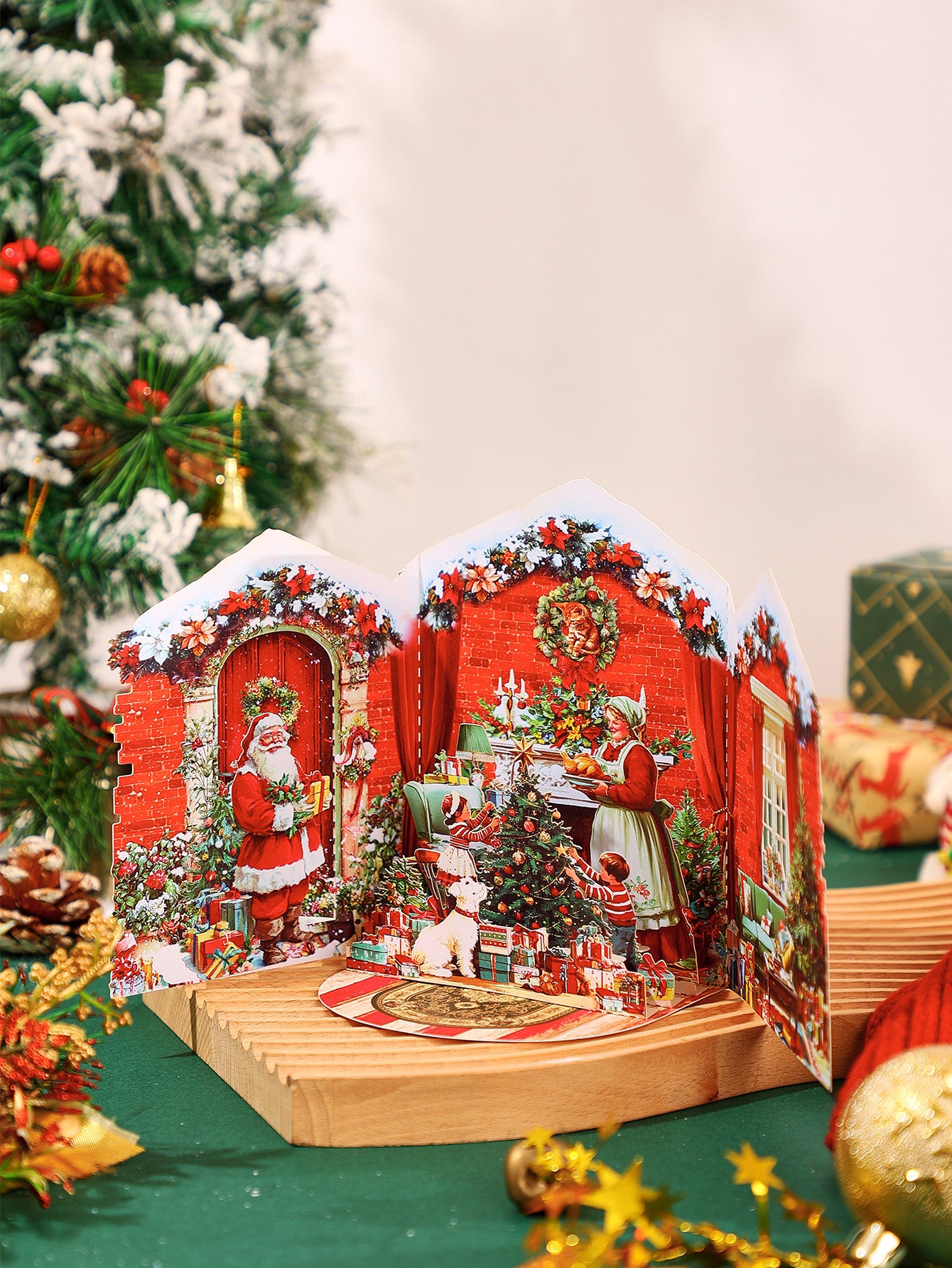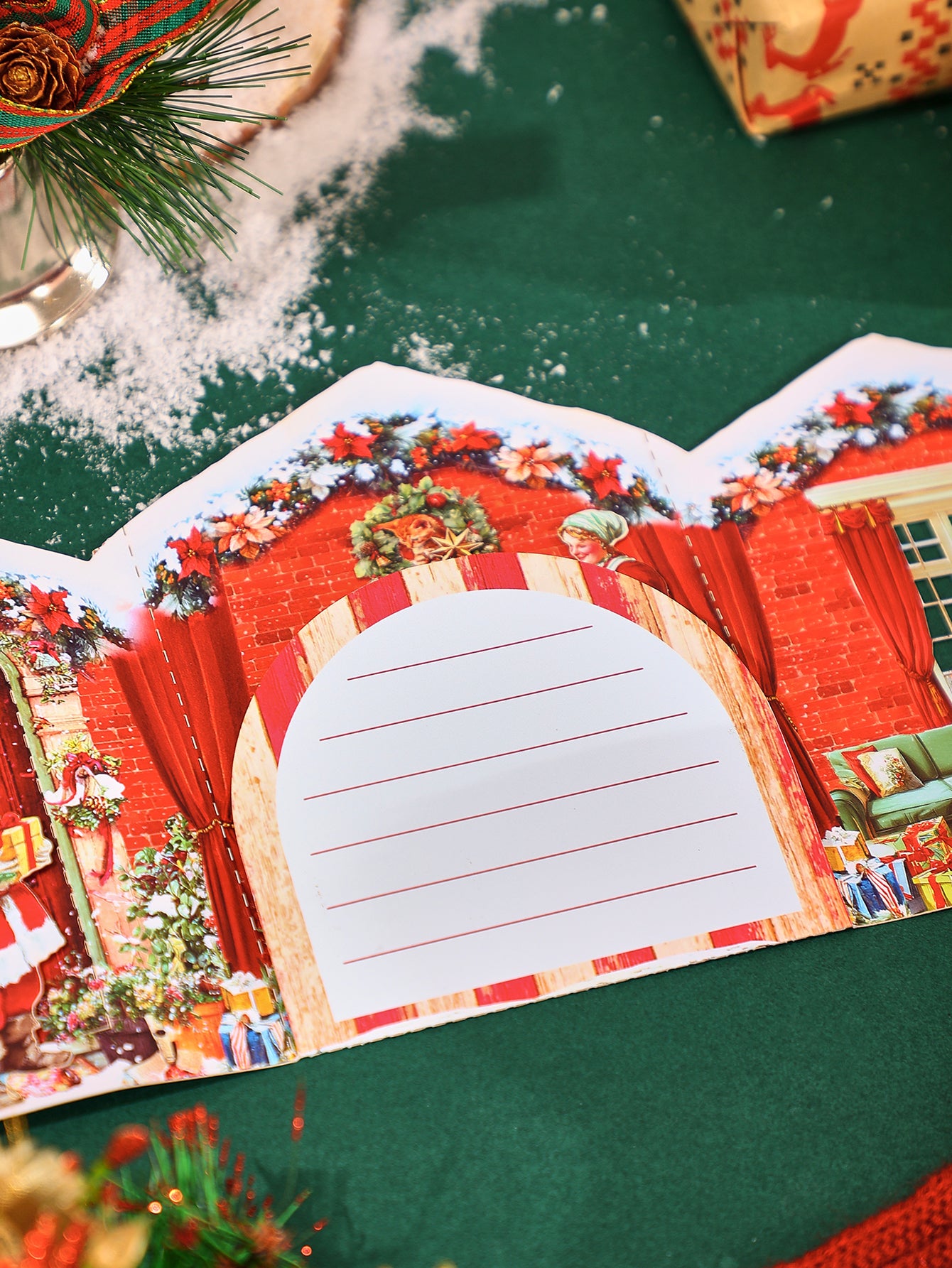 A classic-style gatefold Christmas card with retro holiday details, great for sending timeless greetings.